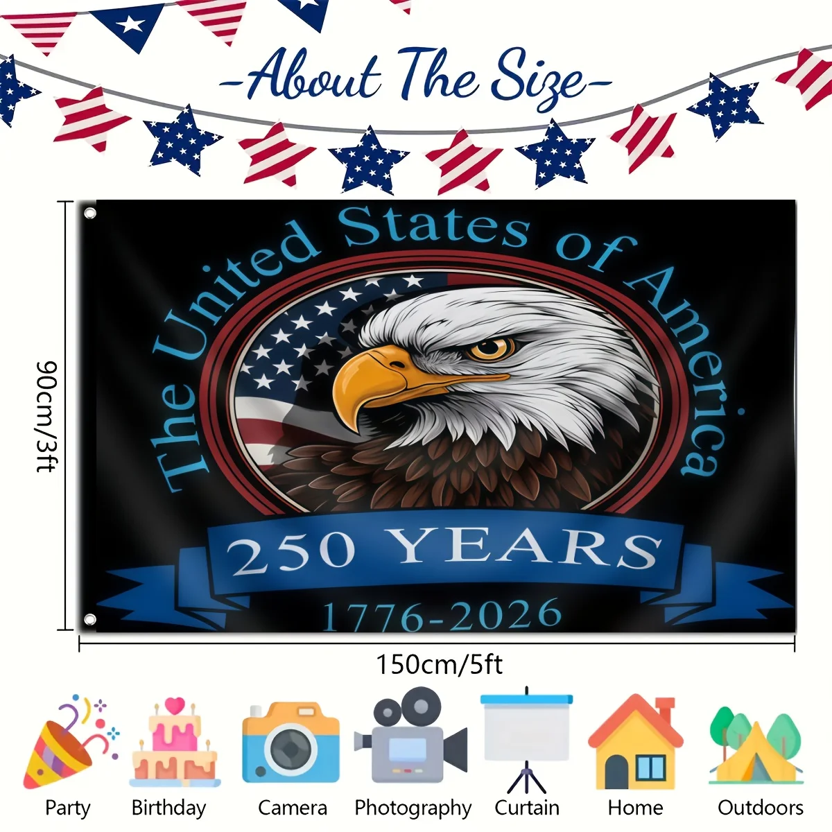 1Pc American Independence 250Th Anniversary Flag 1776-2026 Bald Eagle Themed Flag Decorative Flag Outdoor Indoor Patriotic Flag